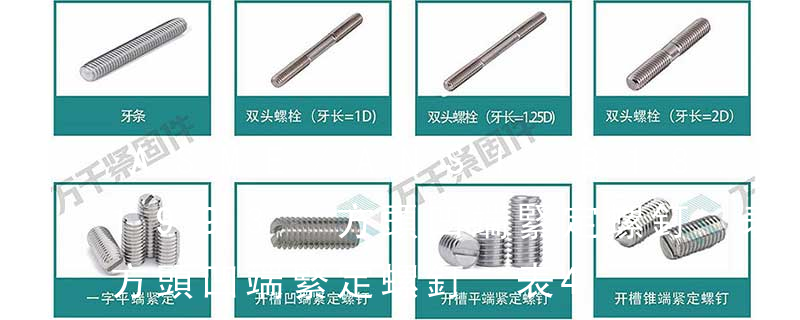 緊定螺釘通常由鋼或不銹鋼材料制造,它的端頭形狀有錐形、凹形、平頭形、圓柱形和階梯形等。錐端或凹端緊定螺釘?shù)亩祟^直接頂緊零件,一般用于安裝后不常拆卸處;平端緊定螺釘?shù)亩祟^平滑,頂緊后不損傷零件表面,用于需