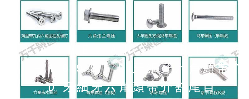 ◆大扁頭割尾自攻螺絲TT◆薄頭自攻螺絲CA◆薄頭平尾自攻螺絲CB◆杯頭內(nèi)六角自攻HA◆干壁釘/墻板釘/纖維釘機絲類:::◆圓頭機牙螺絲PM◆圓頭帶介機牙螺絲PWM◆大扁頭機牙螺絲TM◆沉頭機牙螺絲KM◆半沉頭機牙螺絲OM◆大頭機牙 螺栓頂部標識的4.8是螺栓強度等級,4.8級的一般用A3鋼。性能等級4.8級的螺栓,其含義是:1、螺栓材質(zhì)公稱抗拉強度達400MPa級;2、螺栓材質(zhì)的屈強比值為0.8;3、螺栓材質(zhì)的公稱屈服強度達400×0.8=320MPa。螺栓性能等